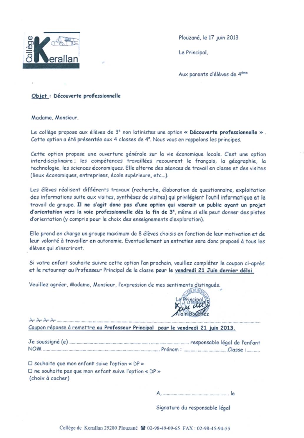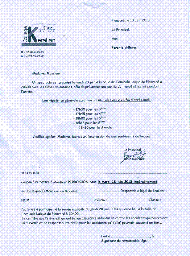 NOTE COUPON REPONSE PLANNING FIN ANNEE SCOLAIRE 2014 2015 |
