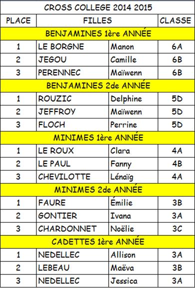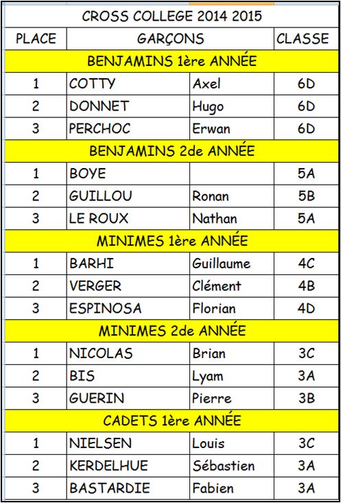CROSS COLLEGE 2014 RESULTATS