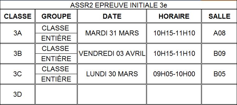 ASSR2 PLANNING 3e EPREUVE INITIALE |