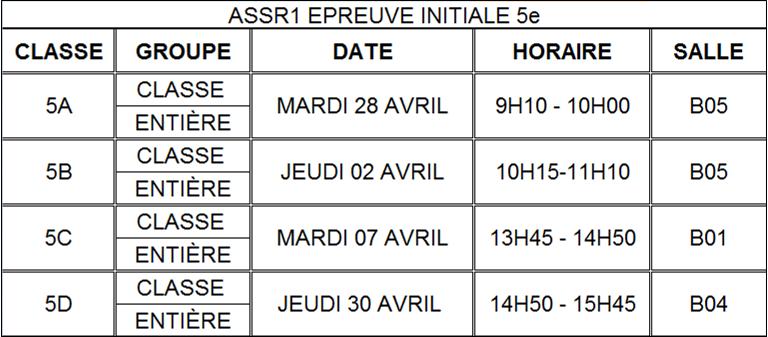 ASSR2 PLANNING 5e EPREUVE INITIALE |