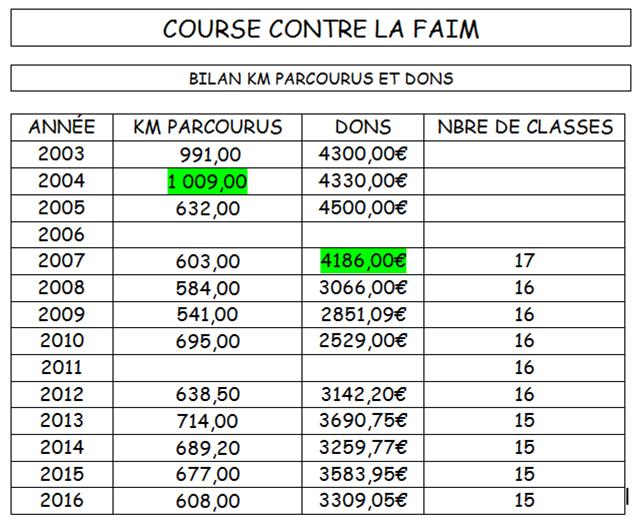 COURSE CONTRE LA FAIM 2016 : BILAN