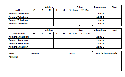 bon de commande vente de crepes |
