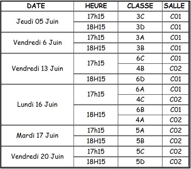 CALENDRIER CONSEILS DE CLASSE 3e TRIMESTRE |