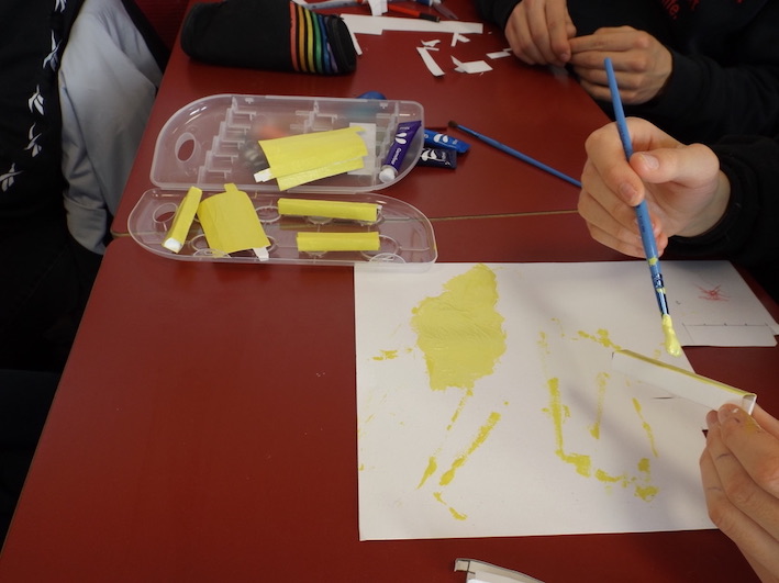Ils auront quatre séances pour fabriquer la maquette de leur monument imaginaire. Celui-ci commémorera l’événement ou le personnage de leur choix. Ils auront à leur disposition des matériaux divers, recyclés au sein du collège, notamment de belles plaques de couleur fabriquées dans une sorte de plexiglas et récupérées en techno. Notre agent technique les découpera aux dimensions choisies par les élèves. nb : la classe de 3e D se débrouillera, faute de salle spécialisée, avec sa pochette de papier Canson pour tout matériel + les matériaux ramenés de la maison.