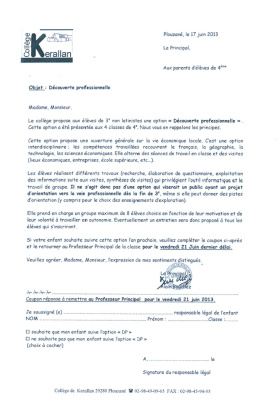 Faire une réunion d’information des parents d’élèves de 3e avec plusieurs proviseurs des lycées brestois.