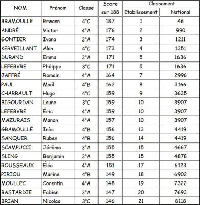 Quelques résultats de nos élèves
