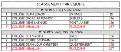 Le collège KERALLAN est sur la plus haute marche du podium à la grande satisfaction de leurs professeurs d’EPS M Corboliou et Mme Leffondre. ! !