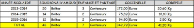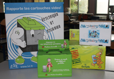 En fin de chaque année scolaire, un petit bilan des différentes actions de récupération menées dans l’établissement depuis cinq dans des conteneurs situés dans une des salles de Technologie.