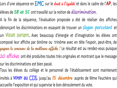 Une exposition sera visible pendant cette semaine au CDI.