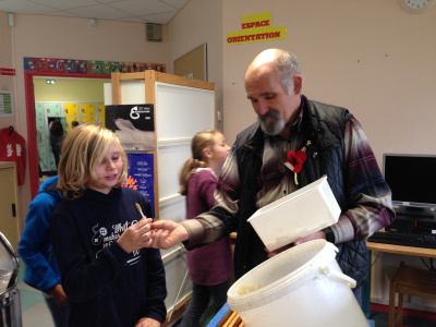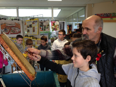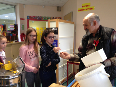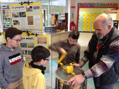 Dans le cadre de l’Agenda21, mis en place au collège, les élèves de sixième vont suivre l’apiculteur chargé des ruches du collège pendant la récolte du miel.