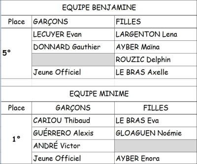 2 équipes se qualifient pour les championnats de Bretagne, qui auront lieu le 10 décembre à Bain de Bretagne (Rennes) :